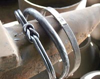 「無垢鉉」は、鉄棒の両端を加熱しながら金槌でたたき、両端部を「鐶付き」と呼ばれる通し穴に取り付けられるように加工したもので、加工しやすいことから様々なデザインの鉉をつくることができますが、「袋鉉」は、鉄板を丸めて中空としたもので、中が空洞になっているため、空気が熱伝導を妨げ、鉉を握った際に熱さを和らげる効果があります。